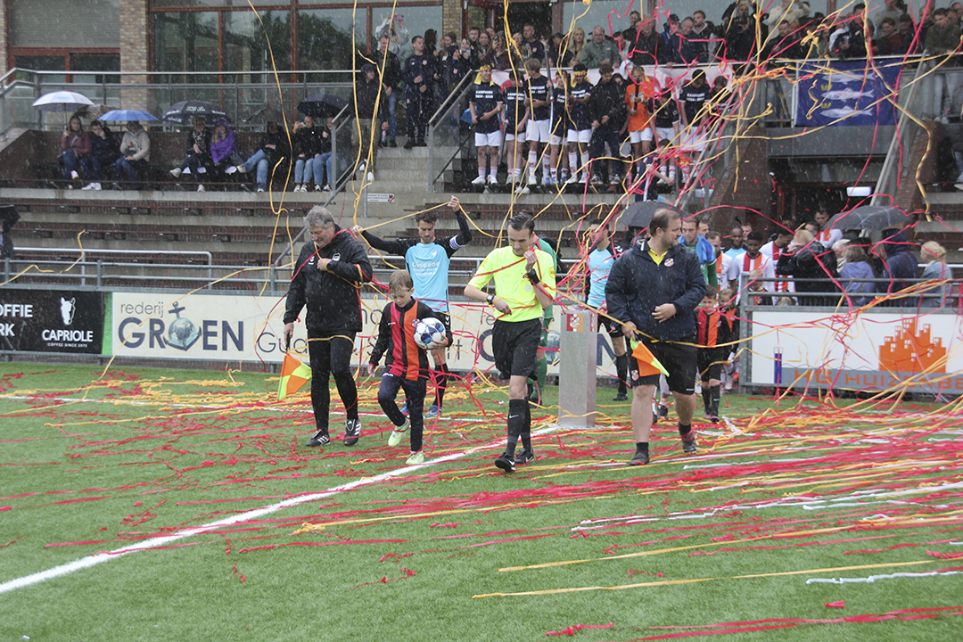 Na al die mooie weekenden was het vandaag regenachtig op het Oostersportpark, Toch was het stampvol met supporters van beide verenigingen. Zij beleefden vanmiddag de wedstrijd als zittend in een rollercoaster. Want het scoreverloop was sensationeel en leidde tot verschillende emoties aan beide zijde.